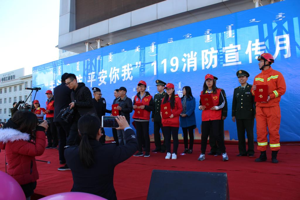11月67日上午,PP电子游戏官网保卫处消防科长白晓龙,副科长王安与学校消防志愿者30余人,在集宁区广场,参加了乌兰察布市“关注消防,平安你我”119消防安全宣传月启动仪式。市政府副市长、市公安局党委书记、局长宝音德力格尔出席活动并讲话,市委宣传部、市公安局、市消防支队、市教育局、市文广新局、市安监局等部门领导及新闻媒体记者等共约300余人参加了活动。
