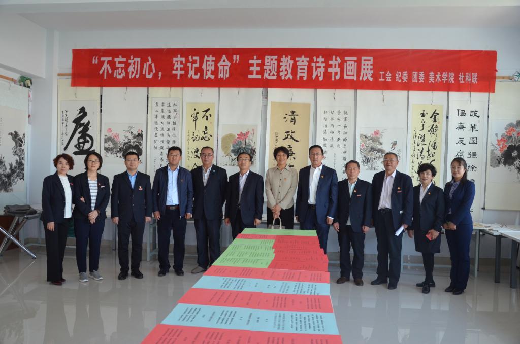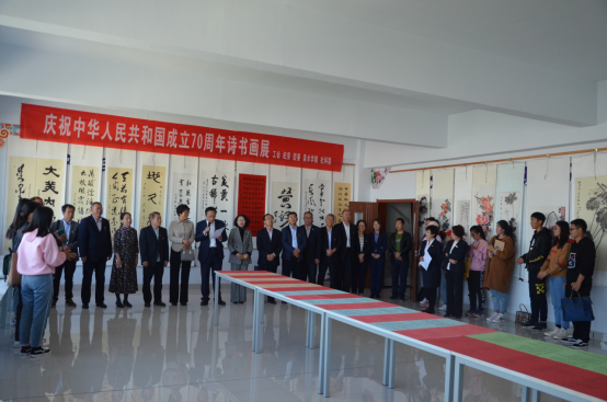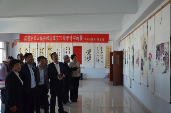 党委委员、统战部部长张秀文,组织部部长朱俊仙,机关党委书记欧军,工会主席李耀,团委书记李瑞俊,美术学院党总支书记焦俊亮,退休老教授孙继善,老教授协会秘书长李林书,数学学院书记莎仁格日勒,数学学院院长李东平,PP电子游戏平台网站书画协会秘书长田振国出席诗画展,纪委副书记唐学明,党政办公室副主任侯素馨以及爱好诗、书、画的老师和同学们参加。