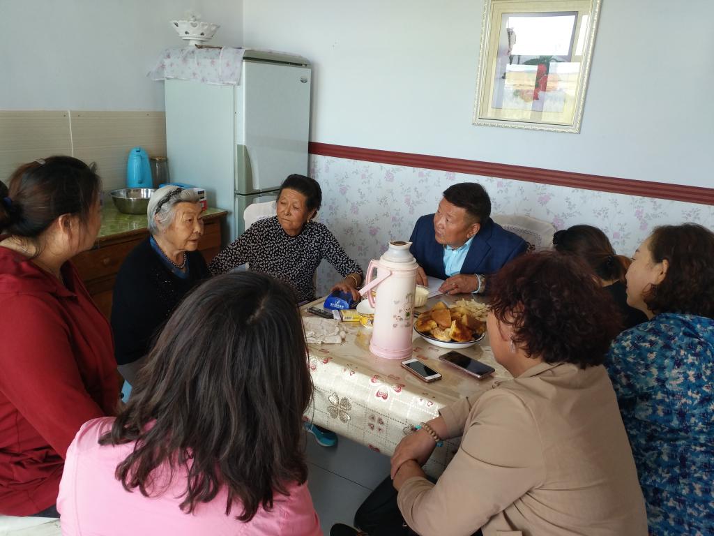 下午调研组深入兴和县民族团结乡,并在乡党委书记王小君、十四苏木东营子嘎查书记朝鲁蒙的协助下前往十四苏木东营子嘎查访问了8位熟知当地察哈尔历史、民俗的老人,期间还实地考察了原正黄旗规模最大的喇嘛寺院——巧尔基苏莫(汉名佑安寺)。