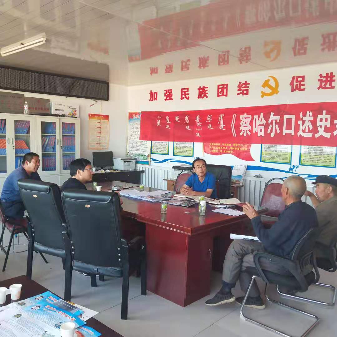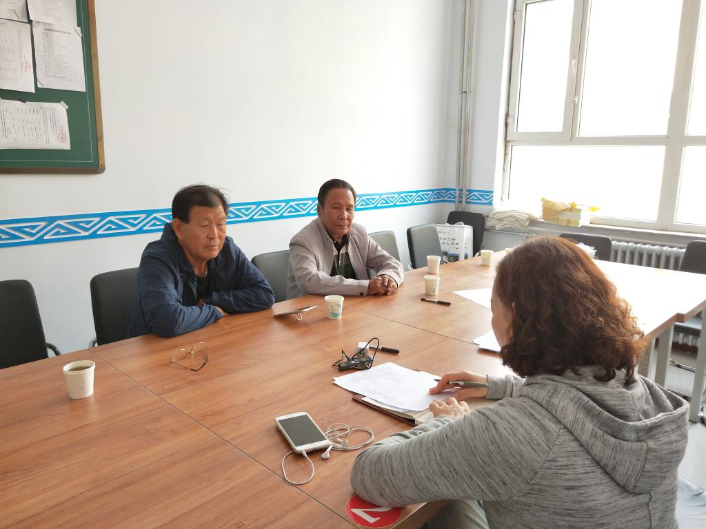 8月17日上午,调研组欧军、乌恩其、额尔敦其其格、朝格图、乌兰其其格、朝木日力格6人前往兴和县开展田野调查。本次调研活动得到兴和县政协会的大力支持。在兴和县政协会议室首先举行了座谈会。座谈会上调研组将访谈目的、访谈内容与意义介绍给各位与会人员。随后进行个别访谈和问卷答题,调研组分三组进行。访谈从访谈对象的基本情况、个人生活经历、生产方式、语言文字使用情况、民俗文化的传承与变迁、宗教、乡镇嘎查的变迁历史、重大历史事件等各方面记录了珍贵的口述史。