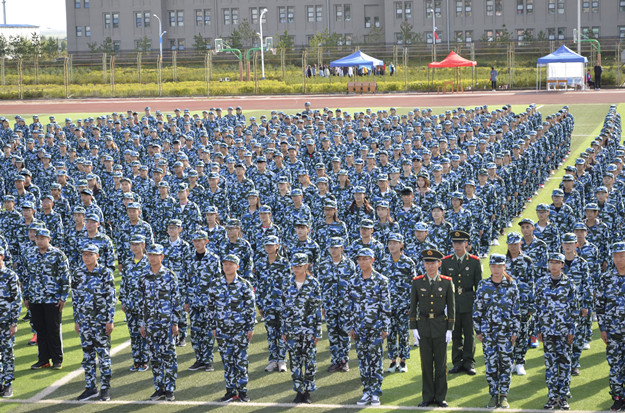 教师代表、新生代表、在校生代表、军训教官代表分别发言。