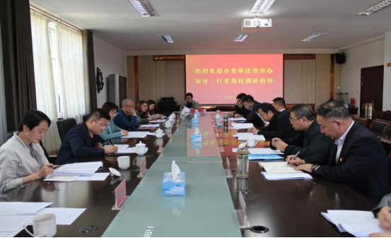 5月20日,市委依法治市办一行来PP电子游戏官网调研高校依法治市工作并举行座谈会。调研组由市司法局、市教育局、市委政法委执法督查科、市公安局治安支队相关负责人组成,乌兰察布职业学院党组成员、副院长郝伯为,乌兰察布医学高等专科学校保卫处处长李青云陪同调研。PP电子游戏平台网站党委副书记刘春,党委委员、副校长梁政,党委委员、宣传部长张富和各相关部门负责人参加座谈。