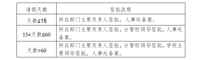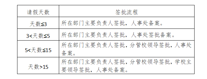 (三)请假人需填写《PP电子游戏平台网站教职工请假审批表》,并按要求提供证明材料,按照准假权限批准后方可生效。未经批准的,擅自离岗或经批准但假满未归的,且又未及时办理续假者,其超出天数按旷工处理。