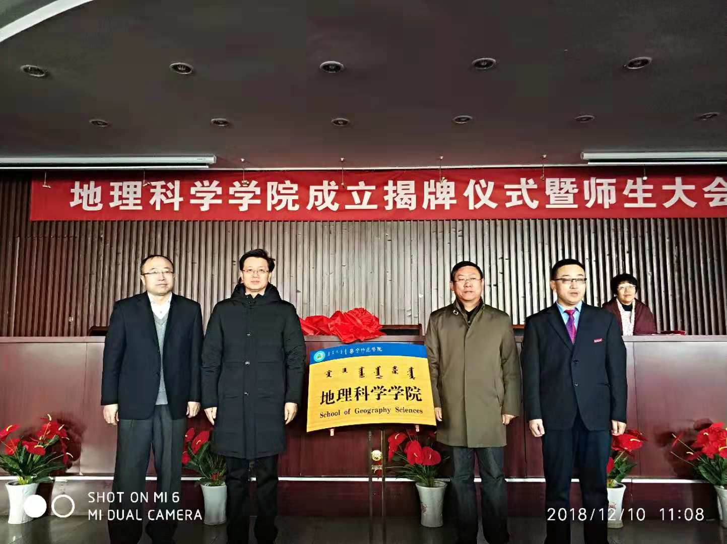 朱玉东、张利平,地理科学学院院长王培青、党总支副书记张强共同为地理科学学院成立揭牌。