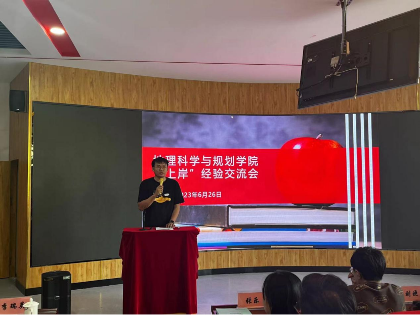 为了进一步营造良好的育人环境,打造浓厚学风氛围,增强学生考研考公的信心和决心,落实“我为师生办实事”,2023年6月26日,地理科学与规划学院举行2023年“上岸”经验交流分享会,党总支书记刘晓霞、党总支副书记黄倩、办公室主任刘晓靓、学院学团办副主任赵娜、办公室副主任班纬、辅导员李瑞英以及大一至大三200余名学生参加此次会议,会议由教学科研科副科长王腾主持。