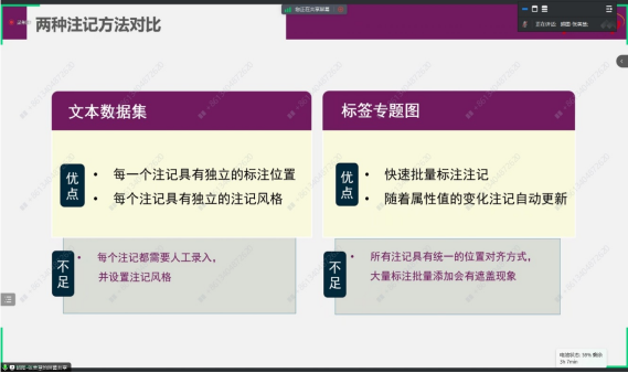 会上,培训讲师用生动形象的语言为同学们详细的讲解如何制作一幅专题图,介绍质底法、点值法、点密度法的制图方法,讲解注记表达技巧。同时,培训讲师结合培训内容,为学生们布置课后作业。