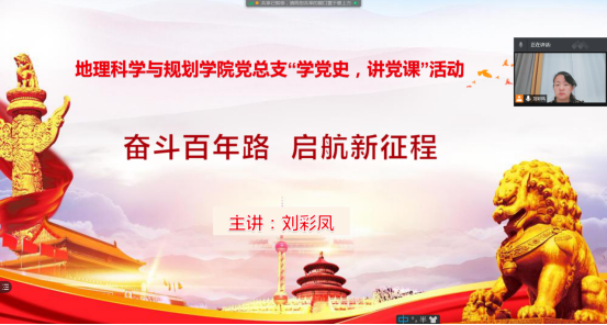 6月24日晚,地理科学与院规划学院教工支部通过腾讯会议举办“学党史,讲党课”活动。本次党课由教工支部书记刘彩凤通过网络直播形式进行,教工支部全体成员参加。