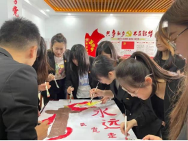 活动中,首先观看了“缅怀英烈”视频,党员同志们围绕视频主题畅谈感受体会;随后,全体党员共同协作绘制“永远跟党走”画幅并进行签名;最后,全体党员合唱“没有共产党就没有新中国”。