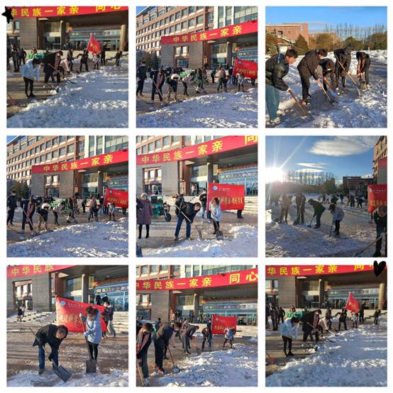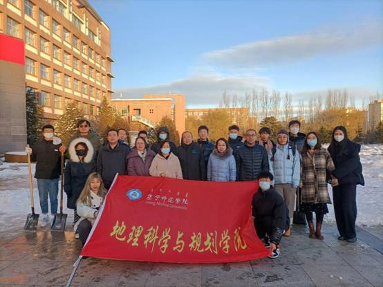 2021年11月6日乌兰察布迎来第一场大雪,集师校园银装素裹,厚厚的白雪覆盖了整个校园。为尽快消除积雪给师生出行带来的不便,确保师生安全出行,地理科学与规划学院师生党员开展“映雪党旗高飘扬 党员扫雪暖人心”主题党日活动。
