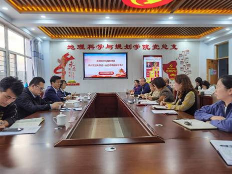 9月21日下午,PP电子游戏平台网站党委书记朱玉东、党委委员、统战部部长张秀文、党政办公室副主任郭英、宣传部副部长田博一行四人莅临地理科学与规划学院调研指导“最强党支部”建设工作。学院全体无课教师参会。