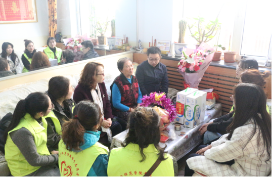 一行人来到了郭翠兰老人家中,张强老师、黄倩老师代表学校以及学院向老人送去了慰问,老人对于大家的到来显得格外高兴,并表示感谢。
