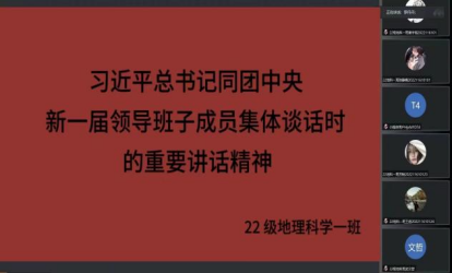 为深入学习贯彻习近平新时代中国特色社会主义思想,学习宣传贯彻好党的二十大精神和团的十九大精神,引领广大团员青年团结凝聚在党的周围,为推进强国建设、民族复兴伟业接续奋斗。7月10日,地理科学与规划学院组织开展“深入学习宣传贯彻习近平总书记重要讲话精神,全面落实团十九大目标任务”专题学习活动。