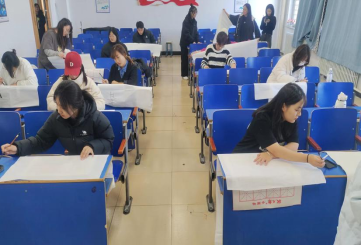 本次比赛分为毛笔字、硬笔字和粉笔字三项,采取现场书写的形式进行,在规定时间内完成指定作品。比赛过程中,参赛同学根据比赛要求进行现场书写,比赛现场井然有序,参赛选手一笔一画、全神贯注、提笔自信、落笔泰然。