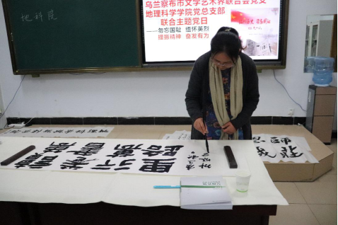 活动邀请中书协会员、自治区书协副主席、乌兰察布市书法家协会主席梁能伟作专题讲座。乌兰察布市书法家协会副主席全翀凤女士、中书协会员李文彪先生以及PP电子游戏平台网站资深老教师现场示范、指导学生书法创作。地理科学学院部分教师和百余名学生参加活动。
