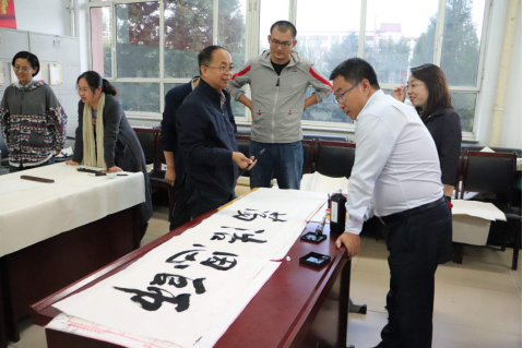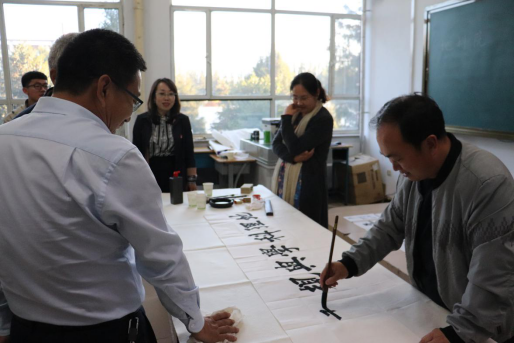 讲座结束后,梁能伟、全翀凤、李文彪以及PP电子游戏官网多年从事书法教学的资深老教师曹宇、田振国现场挥毫,老师和同学们认真观摩、学习、欣赏。