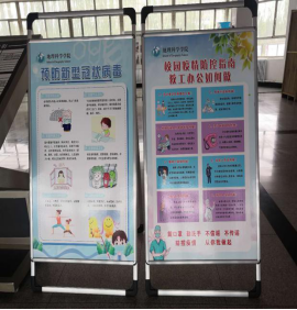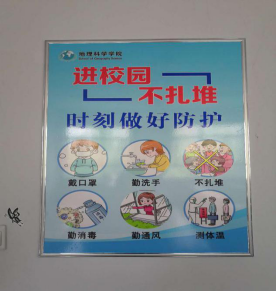 学院对教室、实验室作了全面消毒,清理了卫生死角,制作了宣传展板、张贴了疫情防控卡通提示,设置了隔离室,储备了防疫物资、用品。一尘不染、窗明几净,静待学子归来。