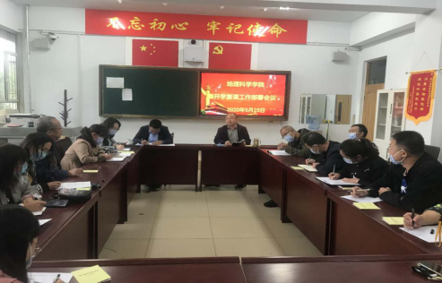 按照《PP电子游戏平台网站关于2020年春季学期学生返校复课安排的通知》精神,严格落实“两案八制”要求,地理科学学院于5月25日召开学生返校复课工作会议。安排返校复课工作,布置相关工作任务,提出目标要求,对返校学生疫情防控、教育管理等各项工作做了周密安排,确保返校复课平稳有序,切实保障师生员工生命安全和身体健康。