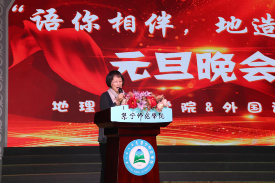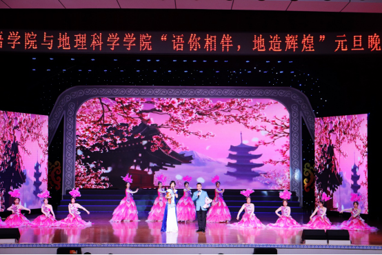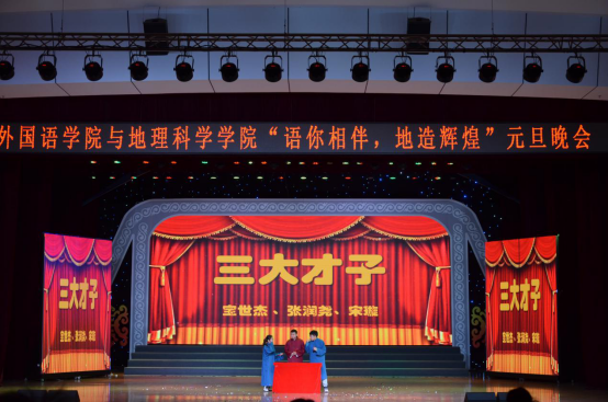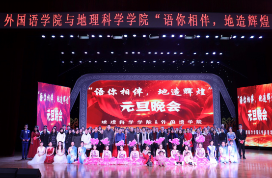 12月27日,由外国语学院联合地理科学学院举办的“语你相伴,地造辉煌”大型元旦晚会在逸夫楼报告厅如期上演。团市委书记李锴栋、校党委委员宣传部部长张富、校党委委员科技处处长李平、学生处处长兰立新、就业处处长刘国义、校团委书记李瑞俊、教务处处长姚玉阁、学生处副处长王飞出席晚会,外国语学院、地理科学学院的全体师生参加。