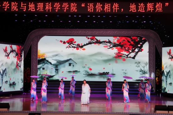 伴随着一首《祖国不会忘记》拉开帷幕,元旦晚会正式开始,首先由外国语学院院长闫晓云、地理科学学院院长王培青致辞。他们带来了新年的美好祝福,对全体师生在2019年所做的工作与努力给予了充分肯定,并对此表示衷心的感谢。同时,希望全体师生不骄不躁继续奋斗,力争在新的一年里谱写更为绚丽的篇章。随后,同学们用自己精心准备的节目,载歌载舞表达了对美好生活的向往和对老师辛勤付出的感激之情。《少年中国说》、《放飞中国梦》、《我们都是追梦人》表达了新时代中国青年奋斗方向、奋斗目标、奋斗源泉的具体论述。精彩的节目使整个会场气氛激扬澎湃、掌声连连,历时近两个小时的晚会在喝彩声中完美落幕。