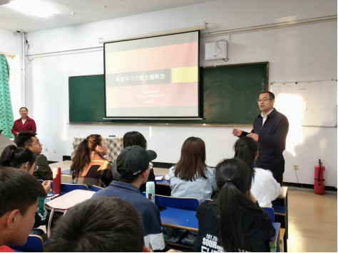 会议伊始,暴向平老师从地理科学学院培养方案的角度出发,简要分析了地理科学专业和人文地理与城乡规划专业的考研就业方向,结合自身的经历给在座同学们讲述考研继续深造的意义,同时,结合实习基地的基本情况给予学生选择就业方向,强调说明我们这场班会的举办的意义,不仅在于同学之间的沟通交流,更重要是的在于学业的传承。
