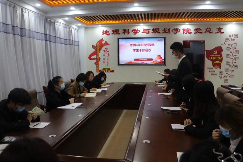 为提高学生干部政治素养和工作能力,进一步发挥学生干部的先锋模范作用,10月20日下午,地理科学与规划学院在603会议室召开学生干部会议,地理科学与规划学院党总支书记刘晓霞、党总支副书记黄倩、学团办公室副主任赵娜、邢晓彬参加会议。