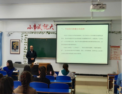 暴向平老师从政策和实践层面说明专业认识实习的重要性,为同学们介绍了实习的政策依据、现实意义,详细讲解了实习目的、人员安排、实习生管理办法和实习手册填写要求等诸多注意事项。他鼓励同学们在实习期间要好好表现,加强实践锻炼能力,通过此次专业实习能够了解熟悉社会,并完成好实习报告。他对学生提出了几点要求:正确认识当前的实习形势、切实转变观念并端正实习态度、严格遵守实习单位和学校的纪律、时刻注意安全、按时按质按量完成实习报告。