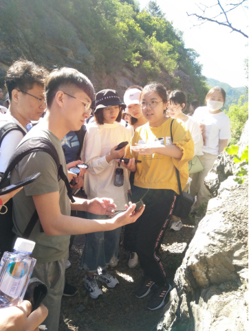 在指导教师的带领下,同学们在实习过程中协调合作,以小组为单位,认真记录罗盘测量数据以及不同时段海陆风的测量数据,实地辨识岩石种类,同时,根据地理景观摄影技术按照构图景别、构图角度、构图方向、构图主体、构图前景、构图对比进行拍摄,实现了专业理论知识与实践操作的对接。