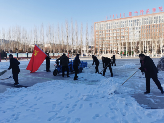 后勤基建处开展“发挥党员模范先锋作用,努力服务广大师生”---扫雪除冰主题党日活动