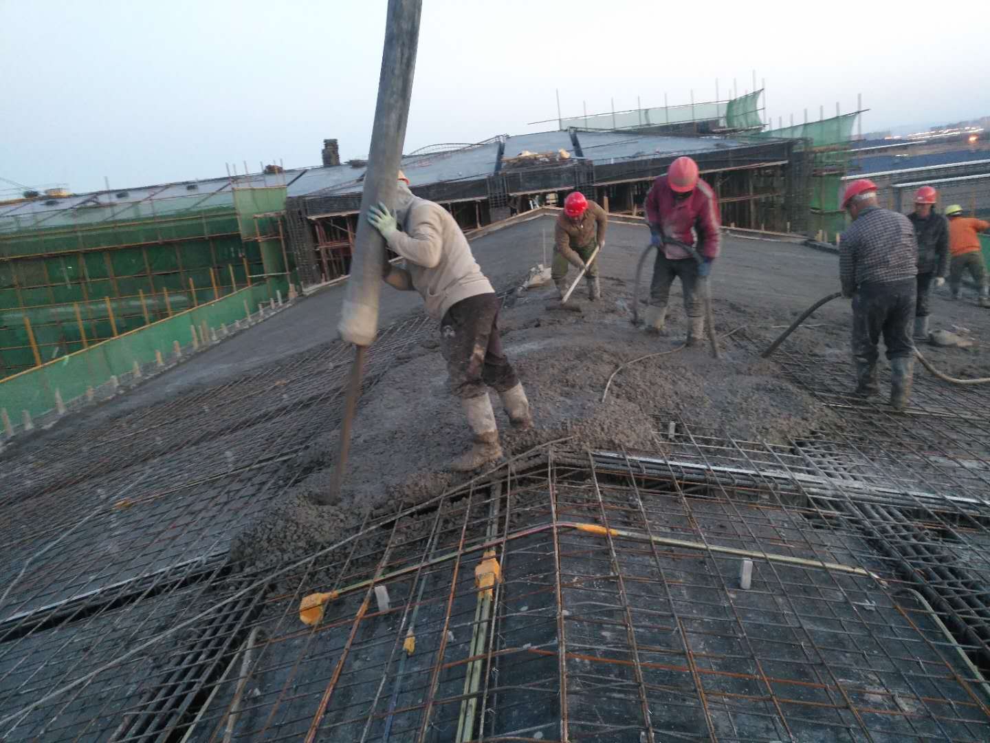 白海校区新建学生公寓楼工地浇筑中段五层封顶混凝土,现己顺利完成。
