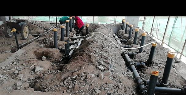(4)4月11日~ 4月17日一层卫生间排水隐蔽管安装完成。