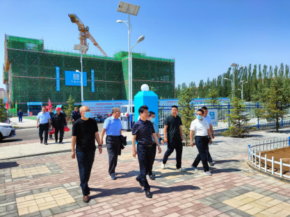 在工地会议室,朱玉东、李凤斌听取了施工方工作汇报。朱玉东强调,要全力做好“保质量”“保安全”“保进度”“三保”任务,争创“草原杯”优质工程,全力抓好疫情防控工作。李凤斌就工程建设中存在的问题作了现场指导,强调了安全生产,现场解决施工方急难愁盼问题。