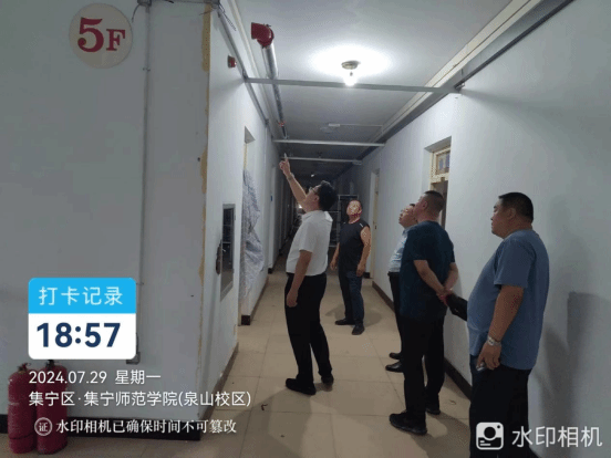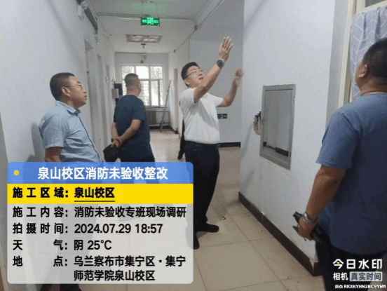 拓俊杰还到泉山校区浴池施工工地检查,就浴池外墙涂料施工,喷淋系统弱电布线,计费系统平台接入等工作详细规划,现场办公解决难题。