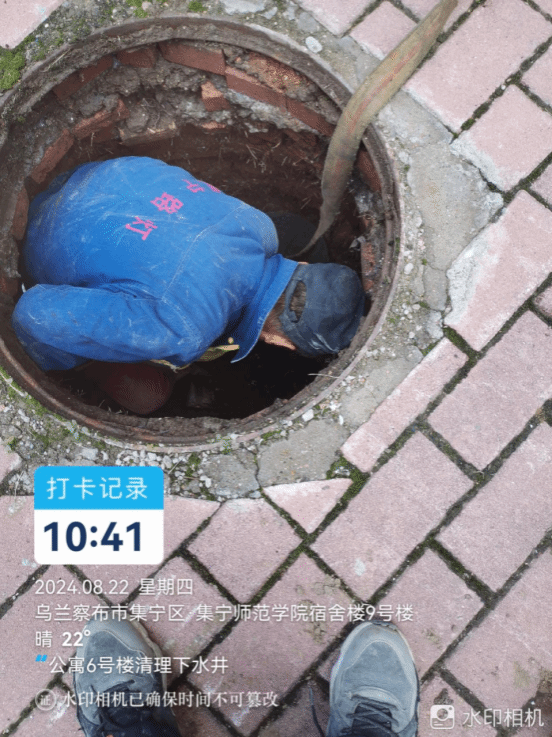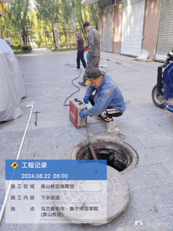 开学前,保障服务中心清理泉山校区体育馆下水道。