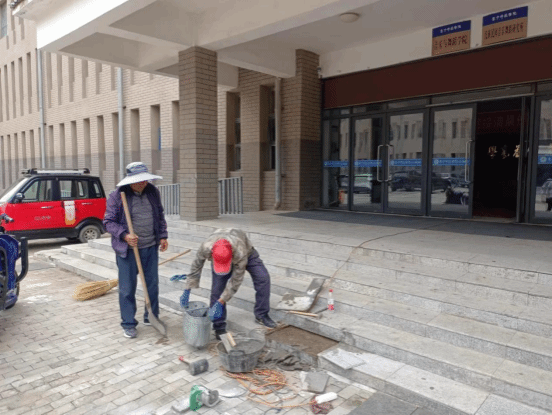 8月26日,后勤基建处维修白海校区音乐学院和蒙古学学院台阶。