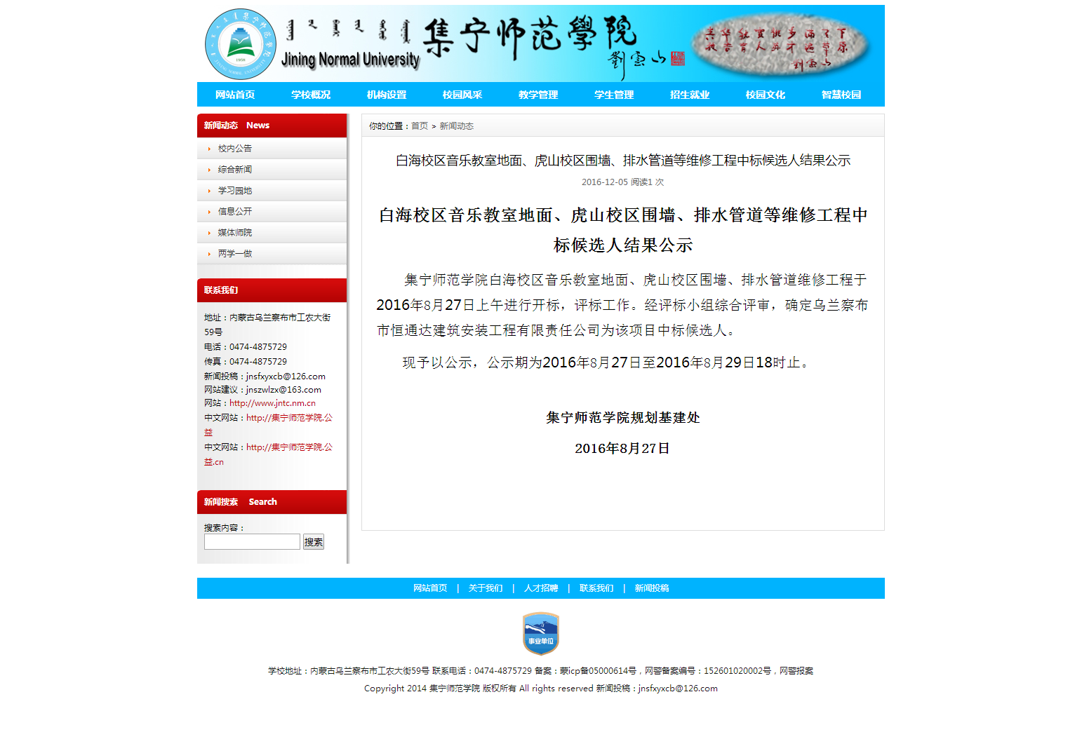 白海校区音乐教室地面、虎山校区围墙、排水管道等维修工程中标候选人结果公示-PP电子游戏平台网站