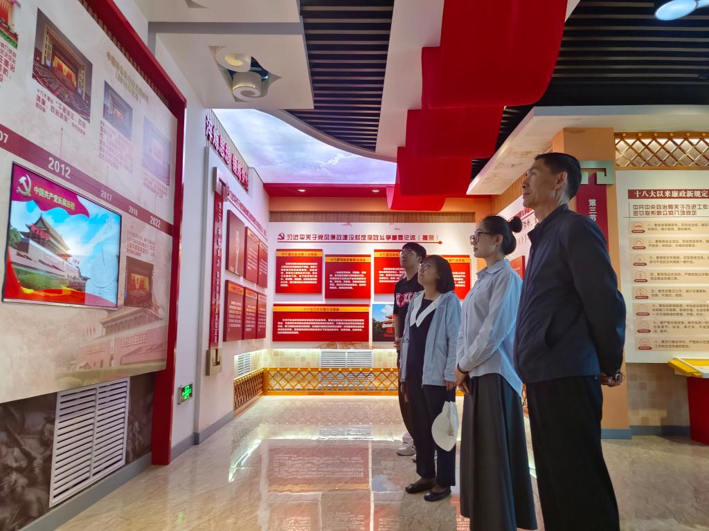 党员们在讲解员的带领下依次参观了各个主题展厅,展厅通过图文并茂、影音结合等形式生动形象地展示了新时代全面从严治党伟大历程和革命先驱的廉洁故事,剖析了党员干部违纪违法犯罪的典型案例,让党员们更加直观地体会到纪律规矩意识树立的重要性,深刻领悟“知敬畏、存戒惧、守底线”的分量。