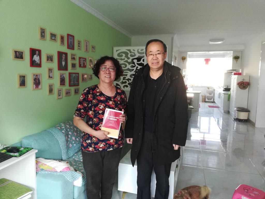为做好党员教育工作,实现党员参学全覆盖,确保年老体弱、行动不便的老党员同志不漏学、不缺课。11月23日,化学与化工学院党总支开展“送学上门”活动,党总支书记李荣和教工支部书记任庆云深入三名退休老党员家中,带着《习近平谈治国理政(第三卷)》和《党的十九届五中全会<建议>学习辅导百问》送到他们手中,并现场耐心讲解学习内容,询问他们的健康状况和近期生活情况。