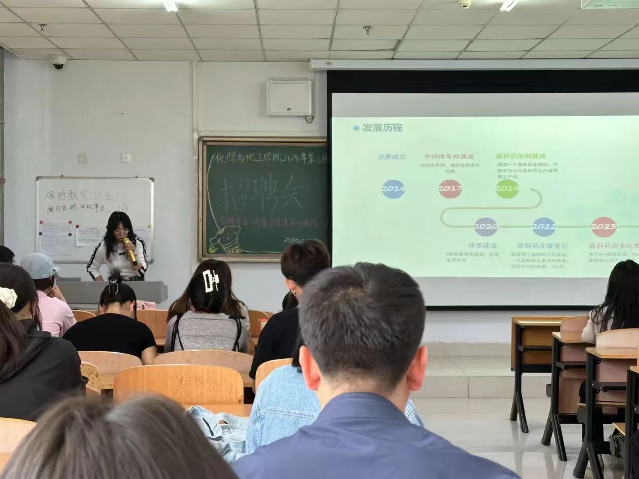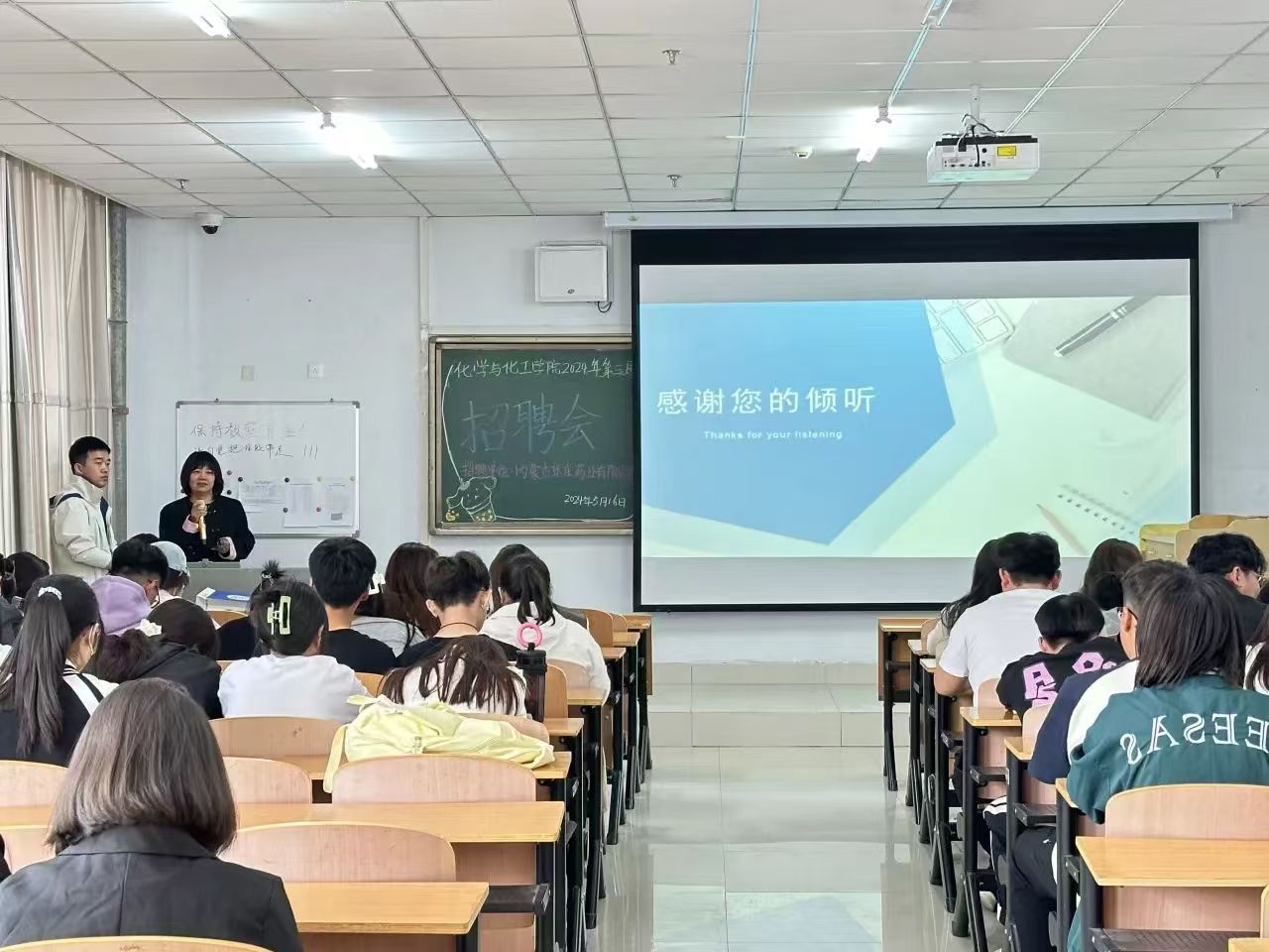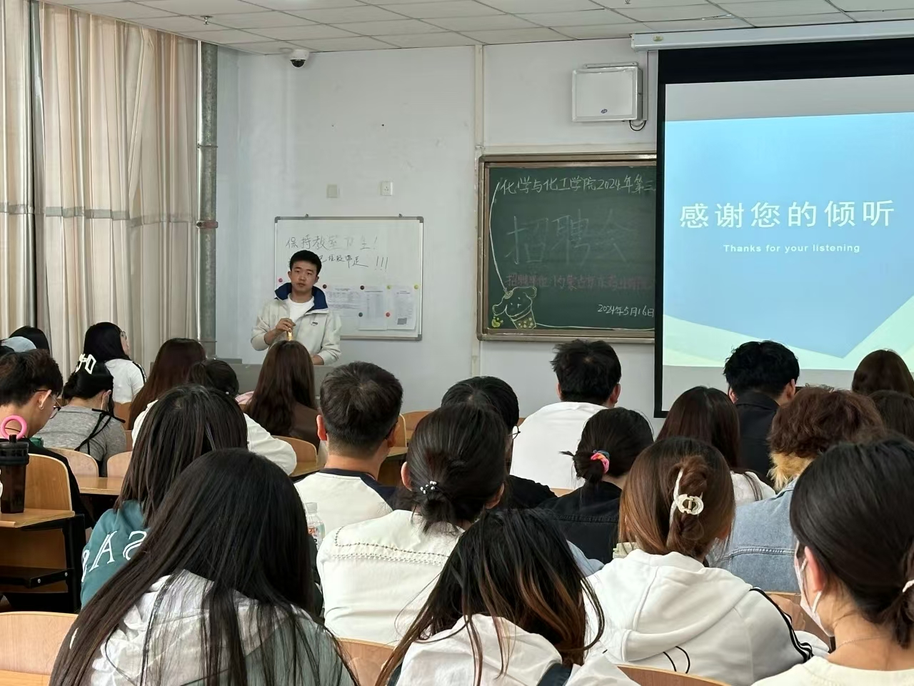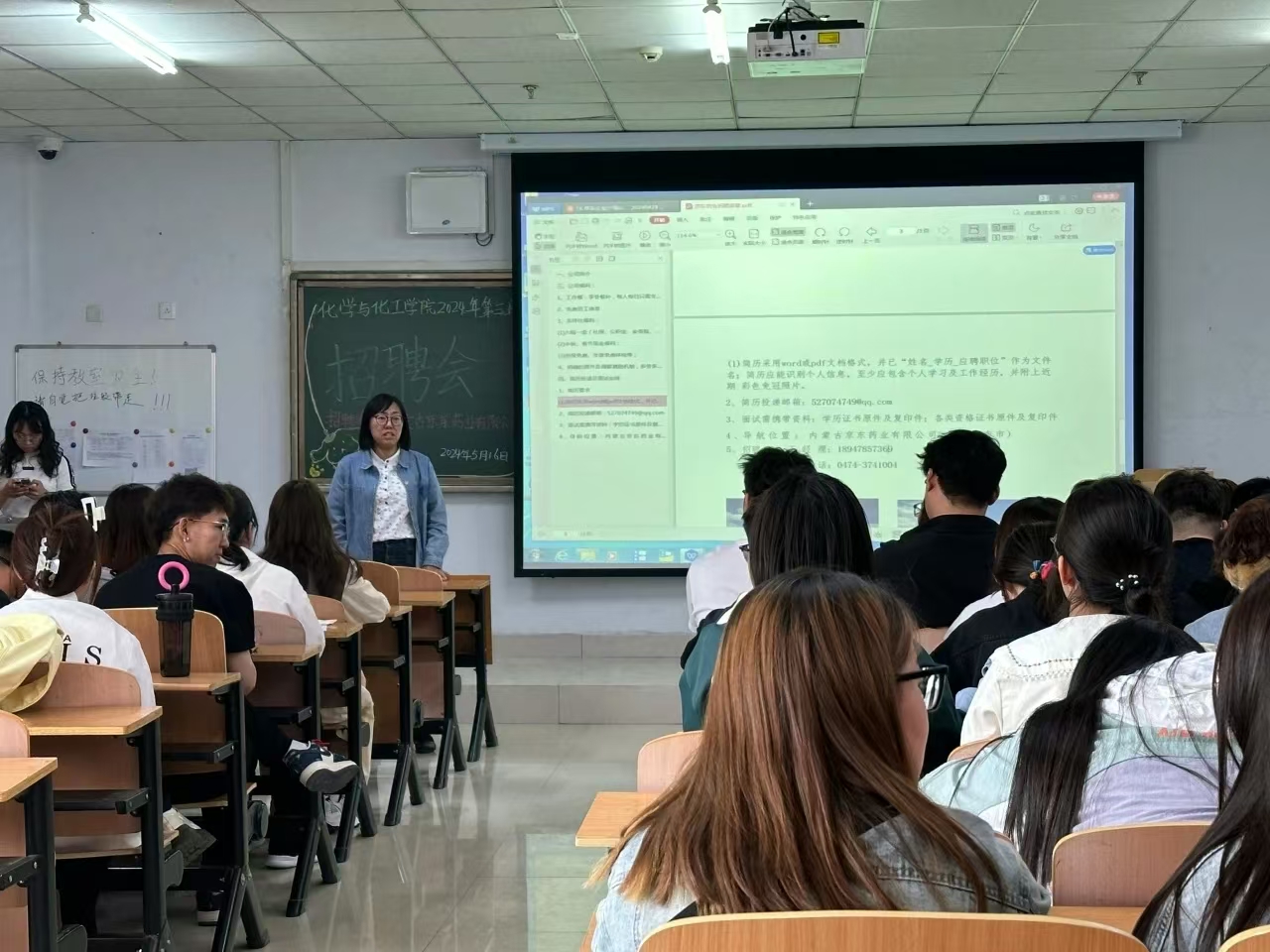为深入贯彻国家关于高校毕业生就业工作的决策部署,搭建毕业生与用人单位双向选择的桥梁,促进2024届毕业生更加充分更高质量就业,化学与化工学院于2024年5月16日下午3点在逸夫楼105举办2024年第四场招聘会。学院党总支副书记李强、辅导员周丹出席活动。