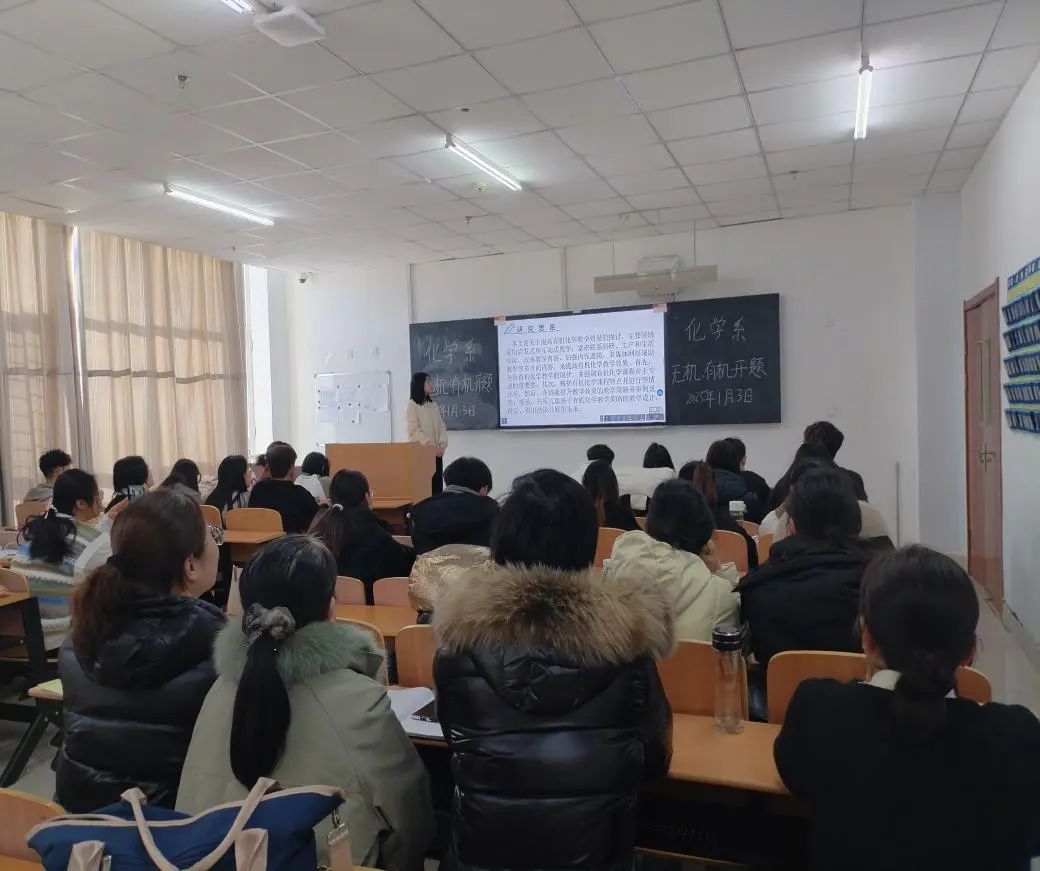 为进一步提高本科生学位论文质量和水平,加强本科生毕业论文过程管理,化学与化工学院于1月3-4日开展2025届化学、应用化学专业预毕业生学位论文开题答辩会。本次开题答辩会由化学系系主任吴亚丽、应用化学系系主任任庆云担任开题组长,学院全部本科生毕业论文指导教师及186名预毕业生参加汇报答辩。