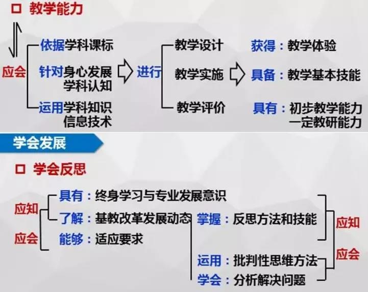 中学、小学、学前教育专业认证(二级)毕业要求包括八个方面:师德规范、教育情怀、学科素养、教学能力、班级指导、综合育人、学会反思、沟通合作。每一毕业要求有具体的细则,以“教学能力”和“学会反思”为例(图二):