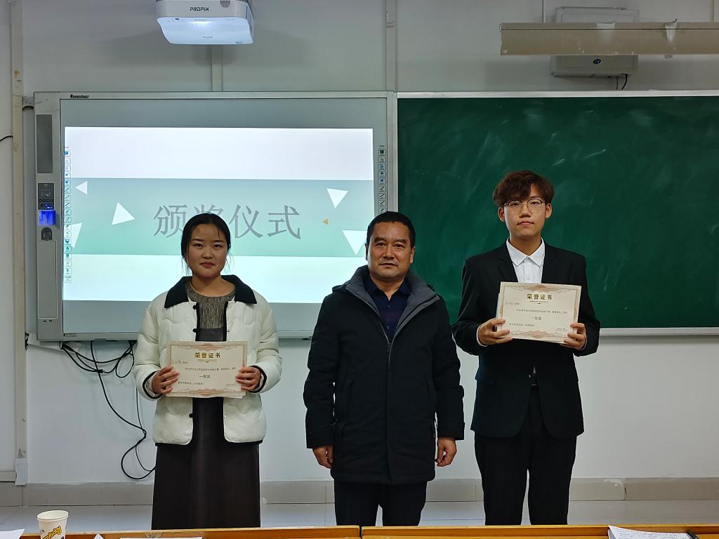 比赛最后,学院老师为参加本次师范生教学技能大赛获奖学生颁发证书并合影留念。