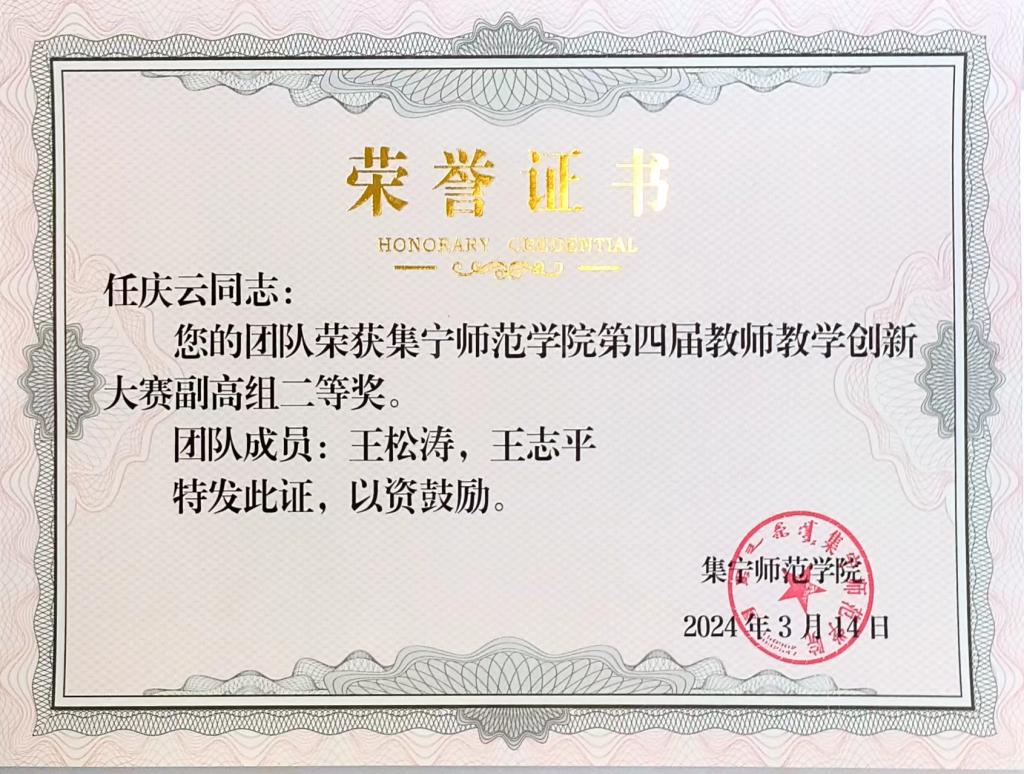 任庆云老师团队获PP电子游戏平台网站第四届教师教学创新大赛副高组二等奖