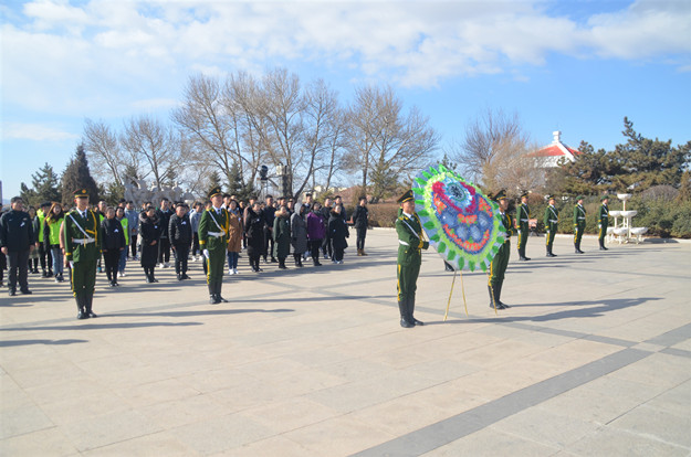 为继承革命先烈奋勇拼搏、吃苦耐劳的革命精神,全体人员徒步6公里前往目的地,仪式上,国旗护卫队向纪念碑敬献花圈,全体向革命先烈默哀,随后向纪念碑敬献小白花。