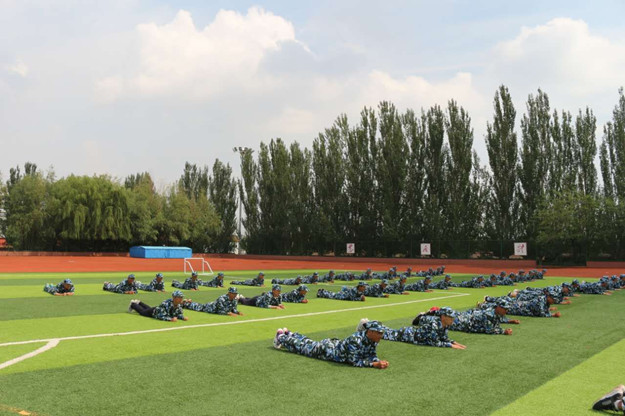 学生社团深入学校军训场地为新生表演节目,加油鼓劲儿