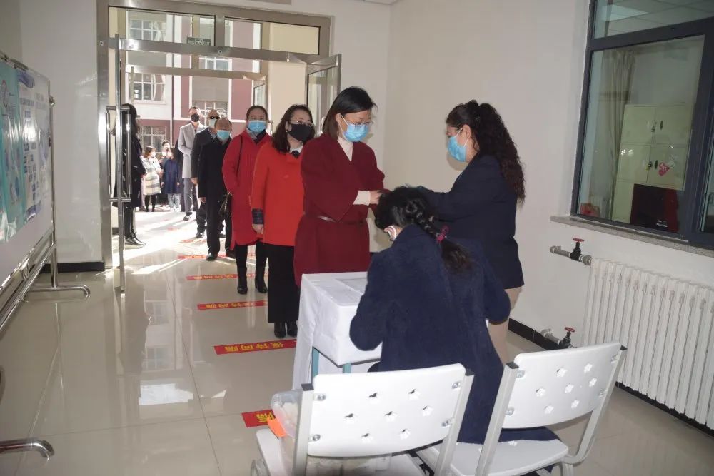 在校门口,模拟开学报道第一天,扮演“学生”的教职工们按照志愿服务组引导以指定间距排队入校,各二级学院工作人员根据核查准许返校名单,对返校学生进行登记。安全保卫组进行体温测量并登记,体温正常者予以通过。在测温过程中,发现一位38℃的体温异常者,医疗服务组对其进行二次复检,复检通过后才允许入校;复检不通过者,将被及时隔离,并第一时间向学校领导小组和辖区疾控中心报告,派专人专车送至指定医院。