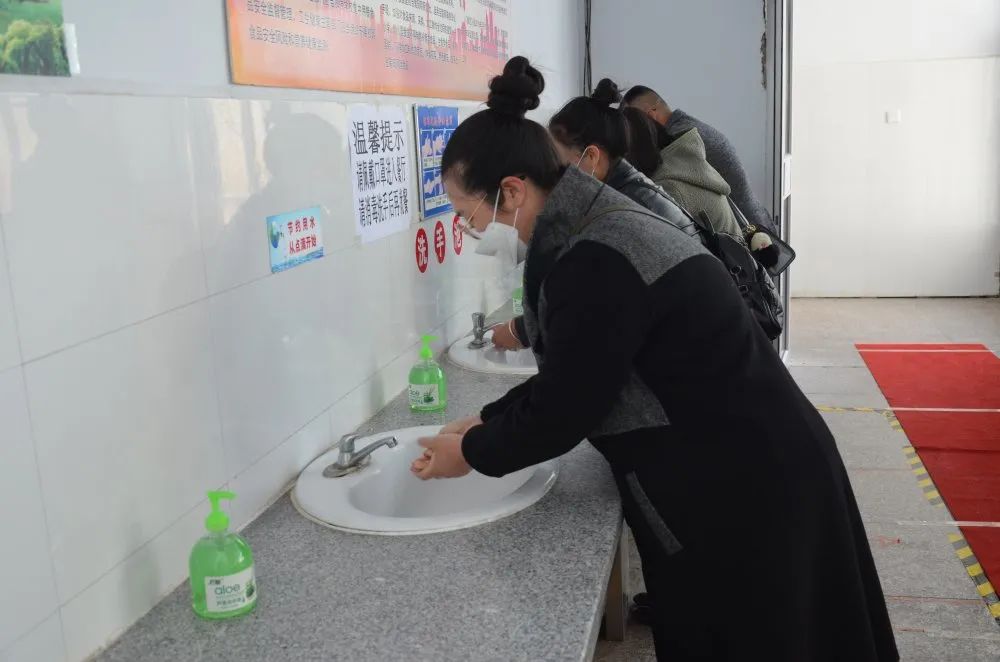 在学生餐厅,参加演练的“学生” 按指定间距排队进入学生餐厅,餐厅内部已规划好行走路线,引导“学生”按指定线路就餐。在餐厅入口处,设有洗手台,志愿服务组引导“学生”就餐前洗手,并分流到各窗口取餐。就餐“学生”按规定位置就坐,每桌单座、脸朝向统一。就餐后按规定路线行走,放置餐盘,有序离开,保洁人员及时清理桌面。
