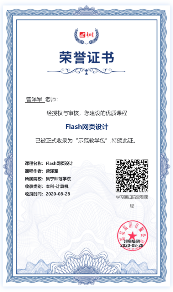 为响应教育部提出的“停课不停教、停课不停学”共同应对疫情,提高网络课堂教学质量,2020年2月24日起,按照PP电子游戏平台网站统一部署要求,美术学院开启了2019-2020学年第二学期在线教学工作。美术学院教师曾泽军按照学院教学安排,讲授《FLASH网页设计》课程,依托超星学习通网络平台,完善了课程直播、录播、慕课,整合了课堂教学资源,完成了为期十五周的网络课程教学,经授权与审核,该课程已被正式收录为超星学习通“示范教学包”优质课程,为广大教师建课提供示范支持和帮助,共享给广大师生参考和使用。