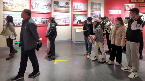 在党史馆解说员的引领和讲解下,大家一边参观,一边学习乌兰察布从新民主主义革命走向社会主义建设的奋勇抗争、在曲折中发展的党史,领略了乌兰察布这片热土上共产党人坚定选择马克思主义,为抗日战争、解放战争的胜利做出伟大贡献的英雄故事和感人事迹。当听到比较熟知的战争年代的事件时,大家驻足观看陈列的历史照片、原始书信、物件、人物雕塑等,感受乌兰察布人民保家卫国、一往无前的拳拳爱国情怀。