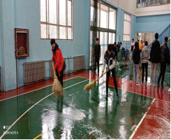 活动中,体育学院党总支副书记牛爱兰带领学院全体党员和2019级、2020级学生对场馆进行了彻底清扫。