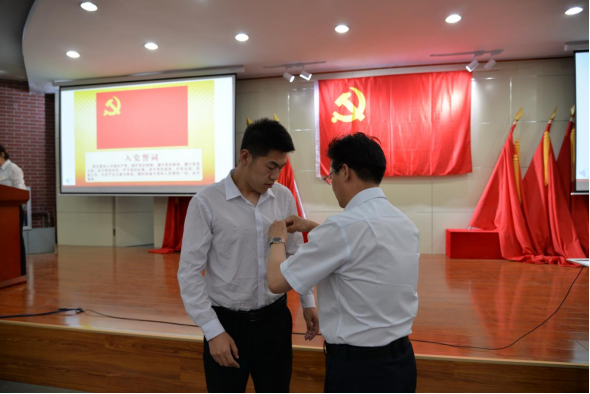 宣誓仪式在庄严的《义勇军进行曲》中拉开序幕。刘晓霞同志宣读了中共PP电子游戏平台网站委员会审议批准的240新发展预备党员名单,朱玉东同志为新发展预备党员代表佩戴了党徽。